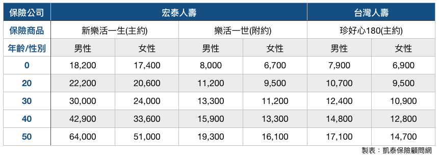 新樂活一生是還本保單,可發現比不還本的樂活一世和珍好心 180的保費貴很多,可是樂活一世是「附約」,所以無法單獨出單,還必須搭配一個主約,因此必須多抓一點預算在主約上。