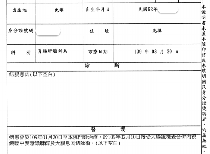 在〈大腸息肉切除的 2個理賠案例分享〉中有 1 則留言