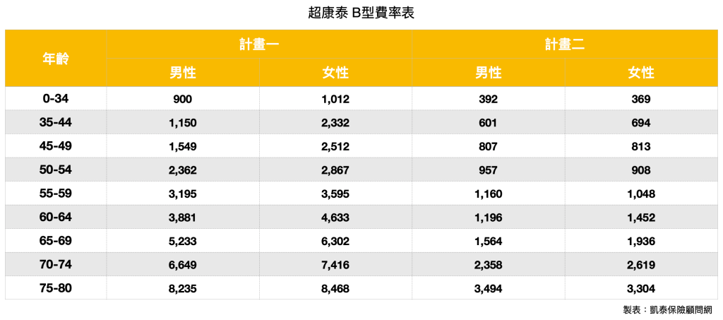若擔心年老時的保費壓力,建議可以選擇 B型計畫一或計畫二。