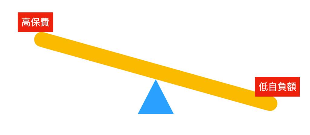 現有住院日額高,代表所擁有的住院醫療額度(雜費)就高,因此能選擇的自負額就必須越高。