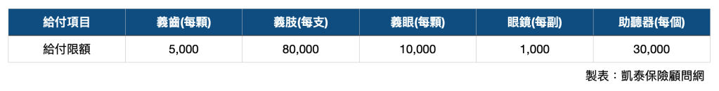 也就是說若因意外所致需要裝設上圖的附屬品,可以在限額內申領理賠,且一次為限。