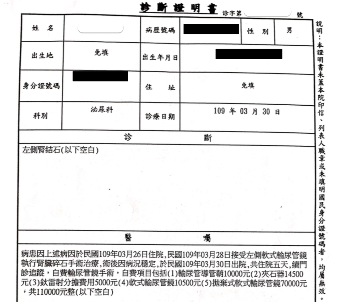 普遍的腎結石治療方式,有最便宜的門診體外碎石術,或需住院的軟式輸尿管碎石術等,費用從健保給付後的數百元到上萬元都有,實在令人難以想像,看似手術風險較低的腎結石手術為何能理賠到 63萬元?