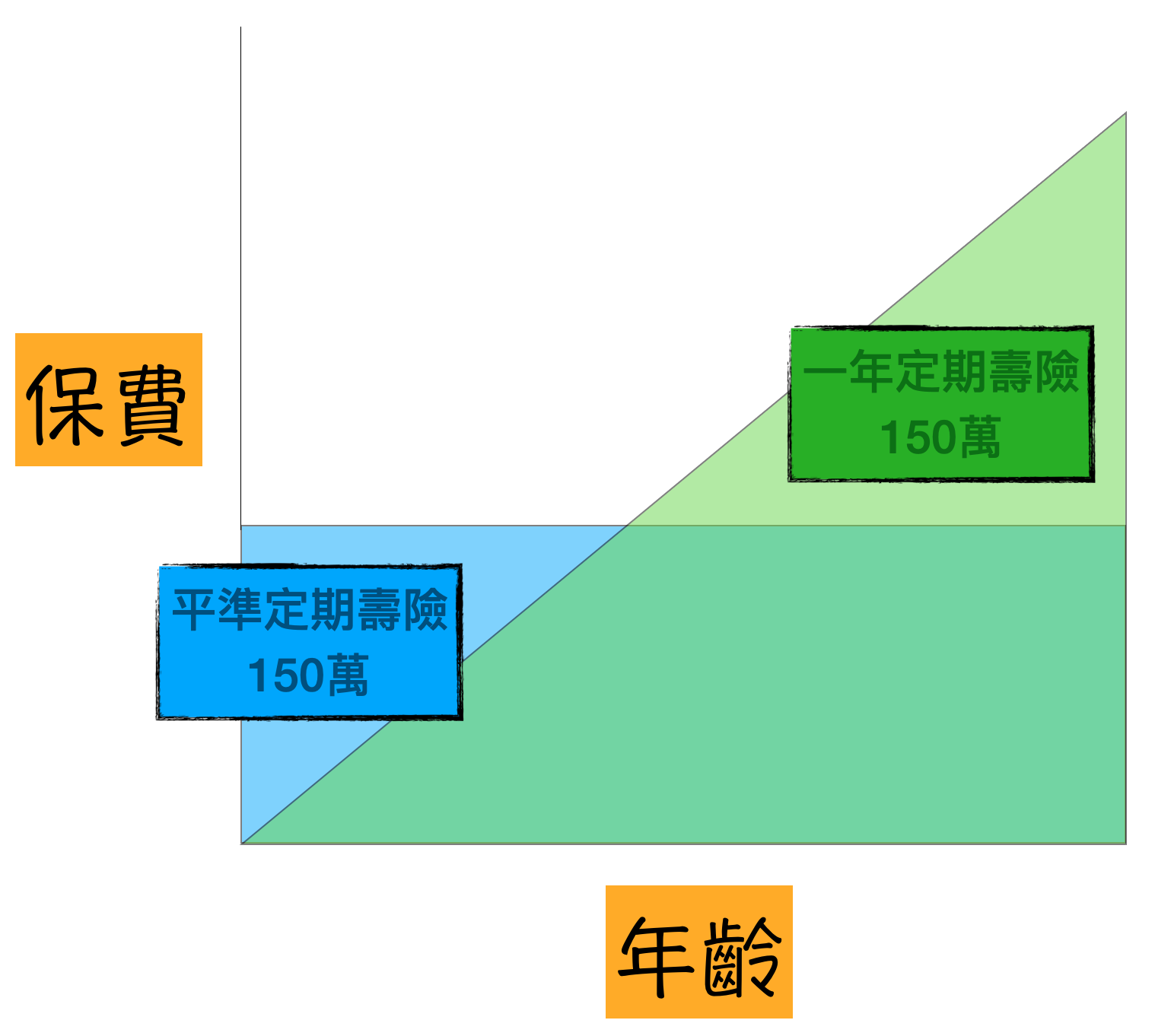 因此所謂進可攻退可守的意思是,即便平準定期壽險滿期了,至少也還有一年定期壽險可以持續續保;抑或當一年定期壽險保費超出預算,也可以選擇不續保,而保留平準定期壽險。