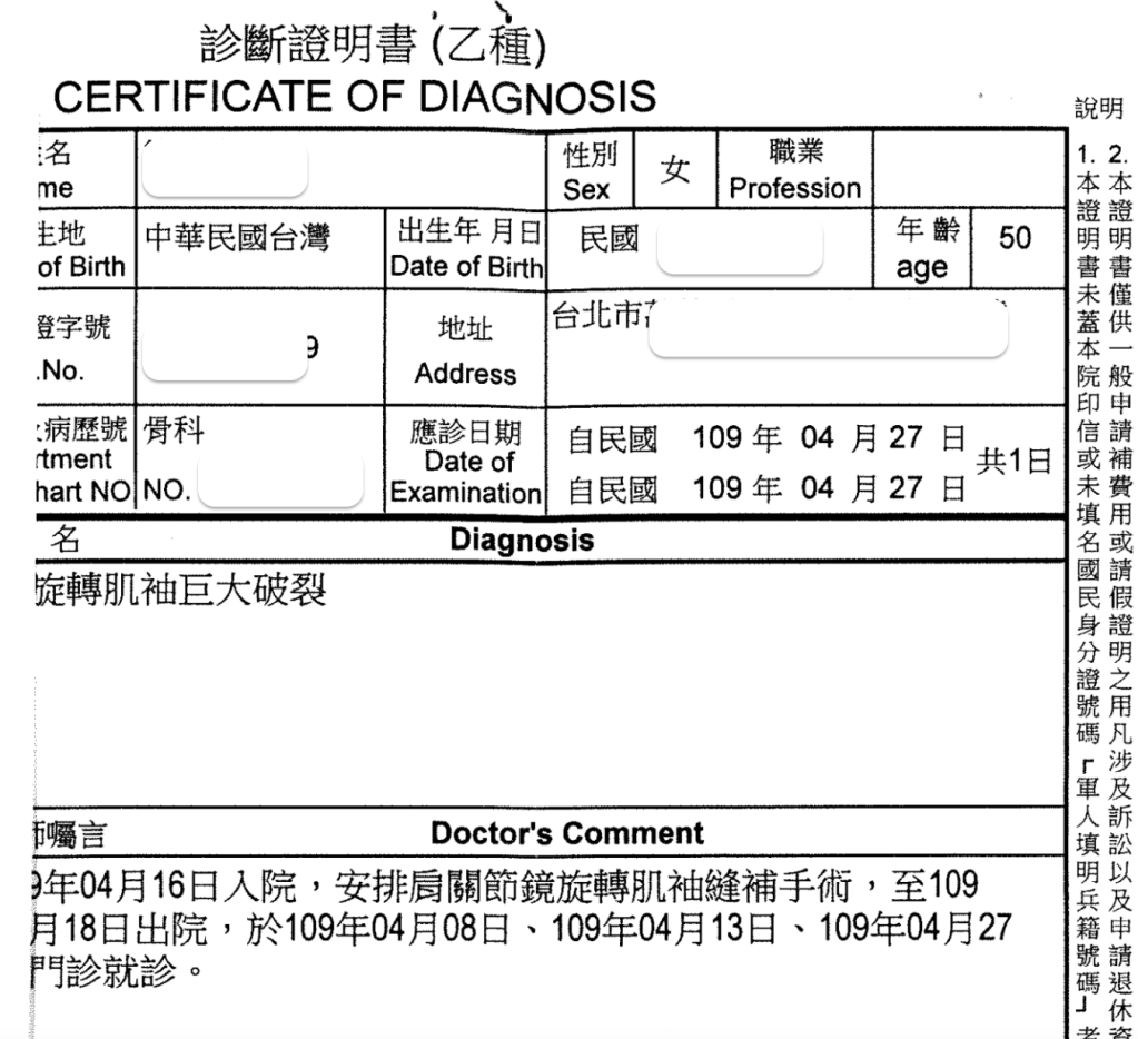 在〈實支實付理賠旋轉肌袖手術,但意外險會賠嗎?〉中有 1 則留言